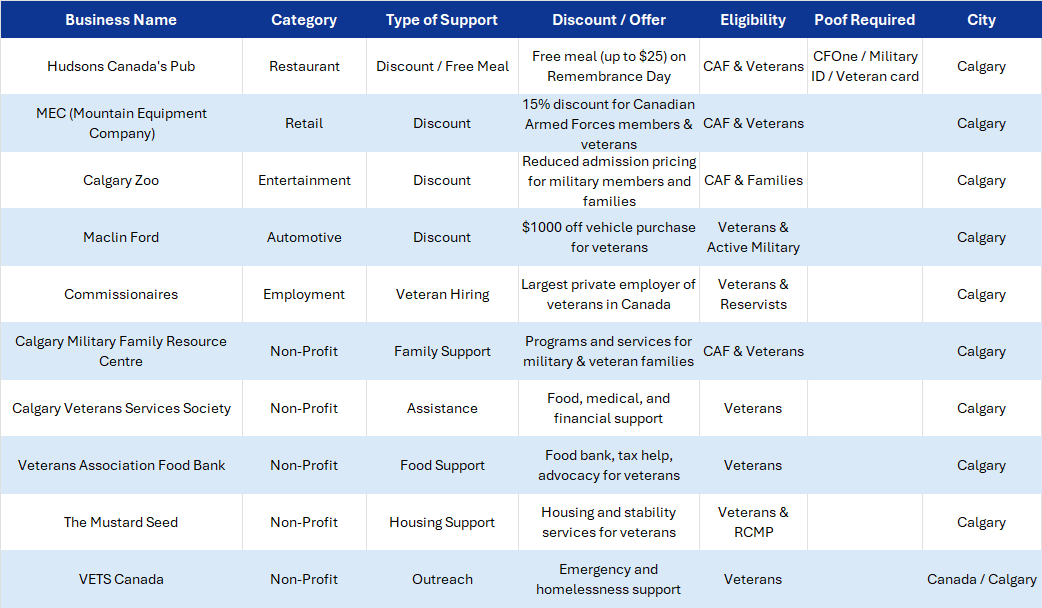 Find Alberta businesses that support Veterans